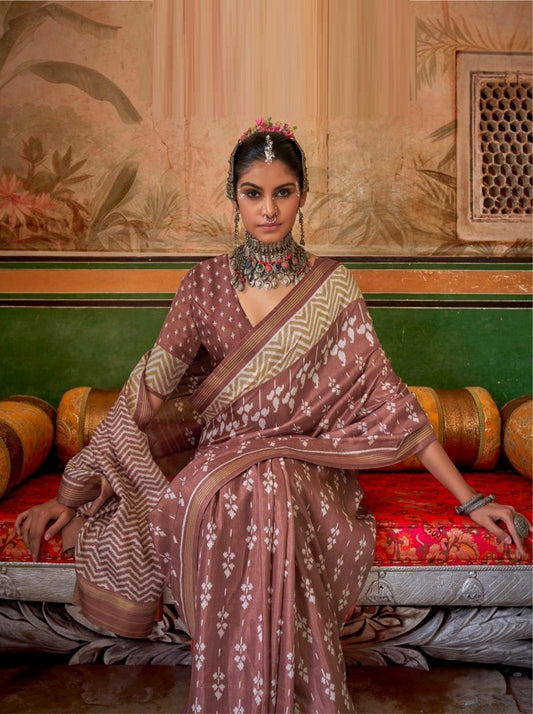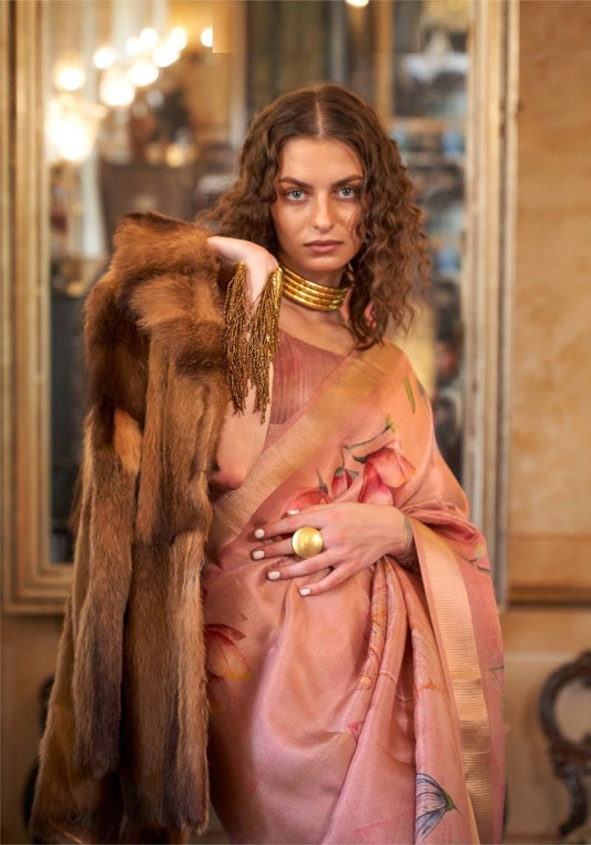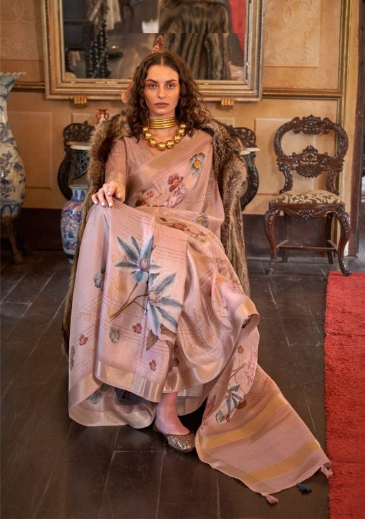 Weadding Wear Peach Soft Weaving Banarasi Floral Saree