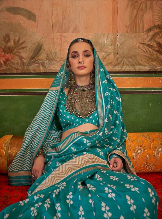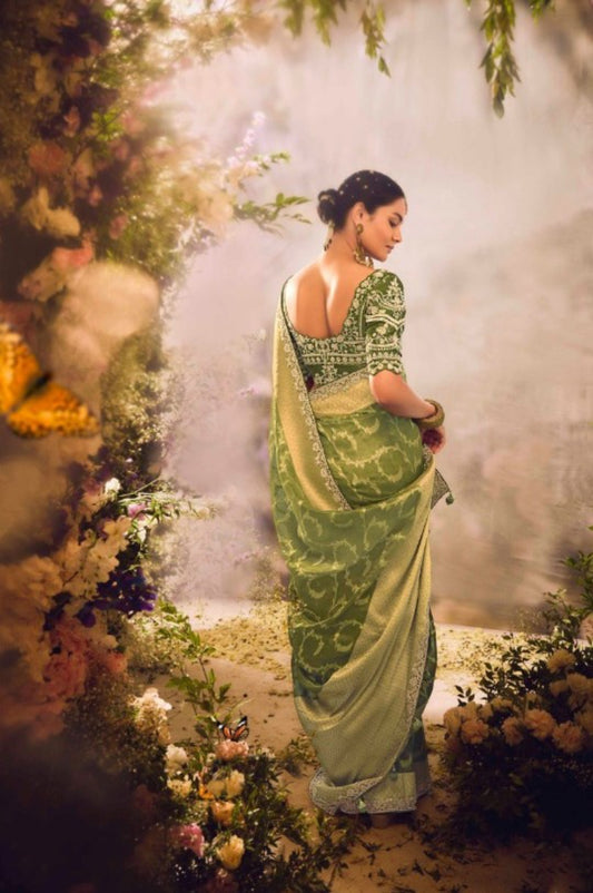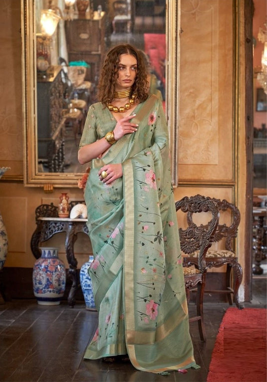 Designer Sea Green Soft Weaving Banarasi Floral Saree