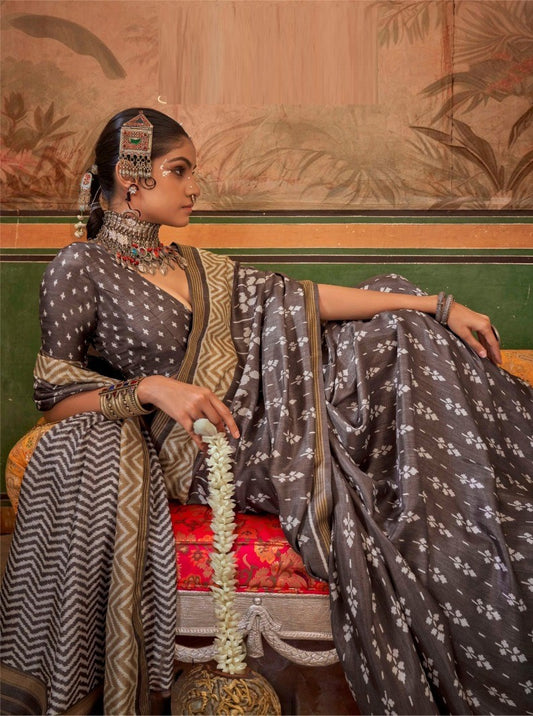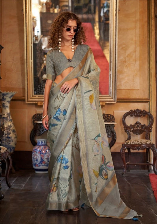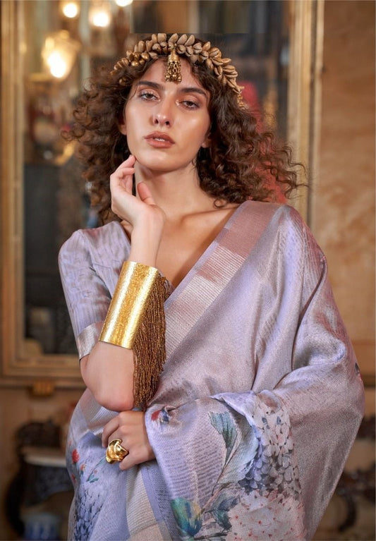 Elegant Light Grey Soft Weaving Banarasi Floral Saree