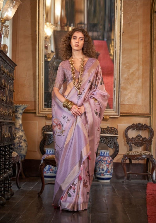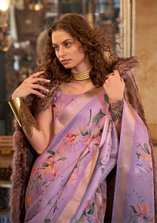 Beautiful Purple Soft Weaving Banarasi Floral Saree