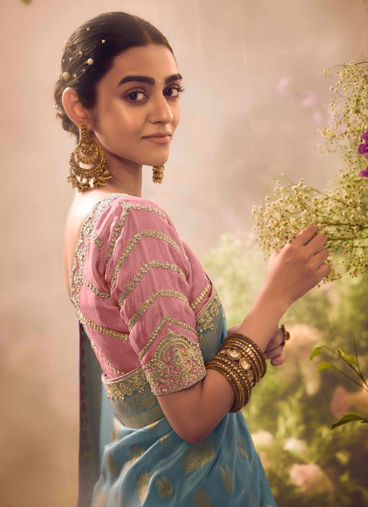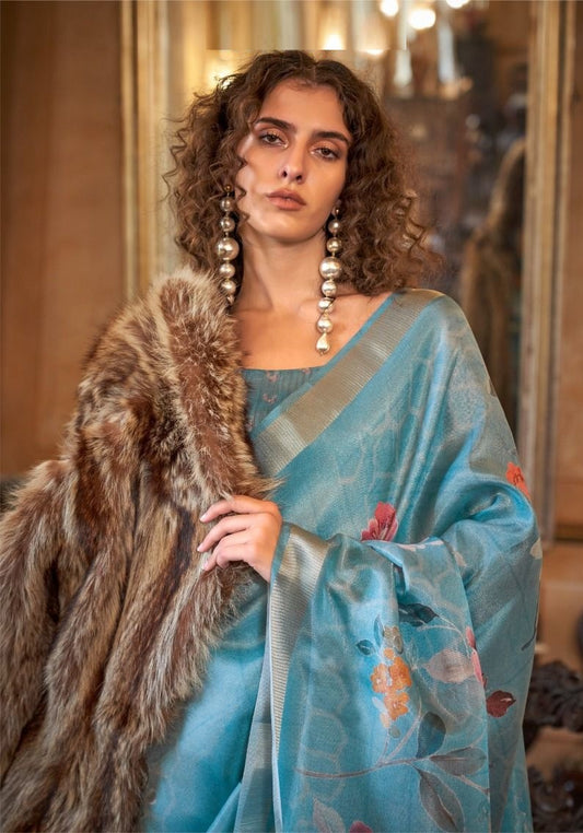 Fashionable Light Blue Soft Weaving Banarasi Floral Saree