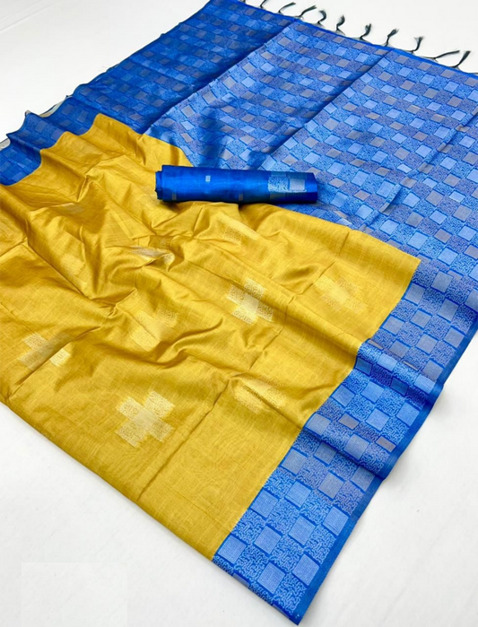 Women Blue And Mustard Handloom Weaving Paper Silk Saree