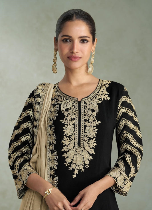 Women Black Chinon Silk With Embroidery Work Pakistani Suit Set