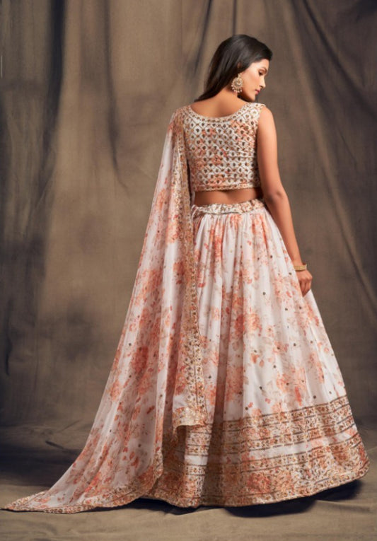 Effortless Cream Gold Crush Silk Stylish Lehenga
