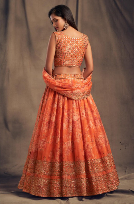 Statement-Making Rust Net With Embroidery Work Bridal Lehenga