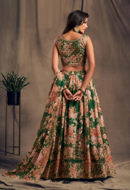 Flattering Lime Green Gold Crush Silk Stylish Lehenga