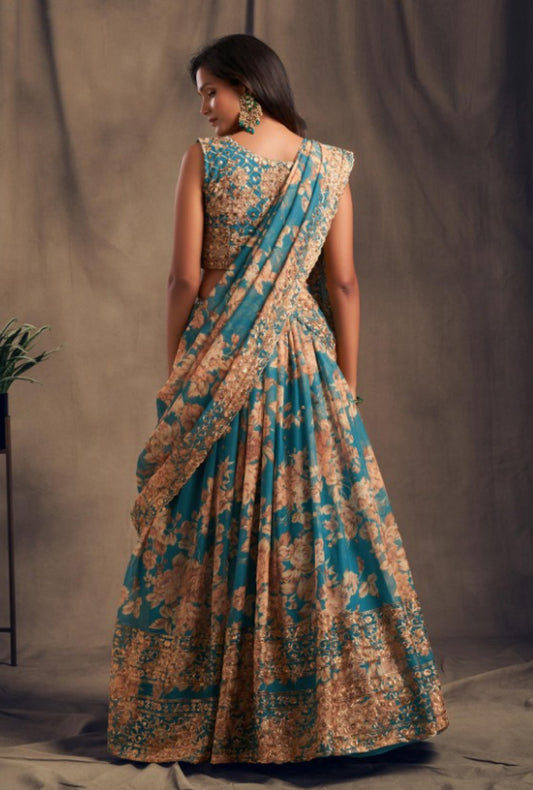 Sublime Teal Gold Crush Silk Stylish Lehenga