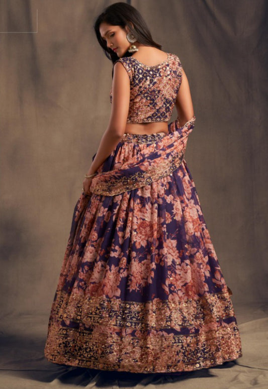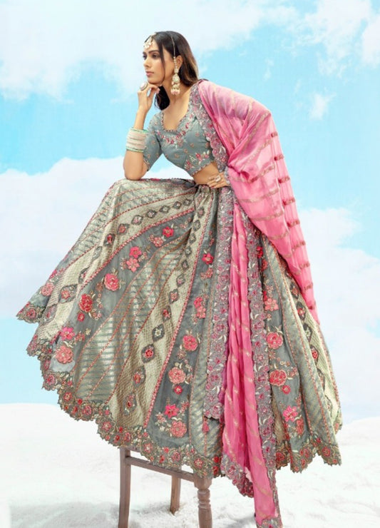 Iconic Mauve And Teal Silk Sequins With Embroidery Work Reception Lehenga