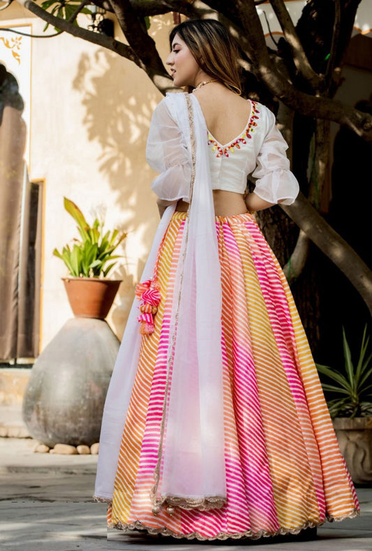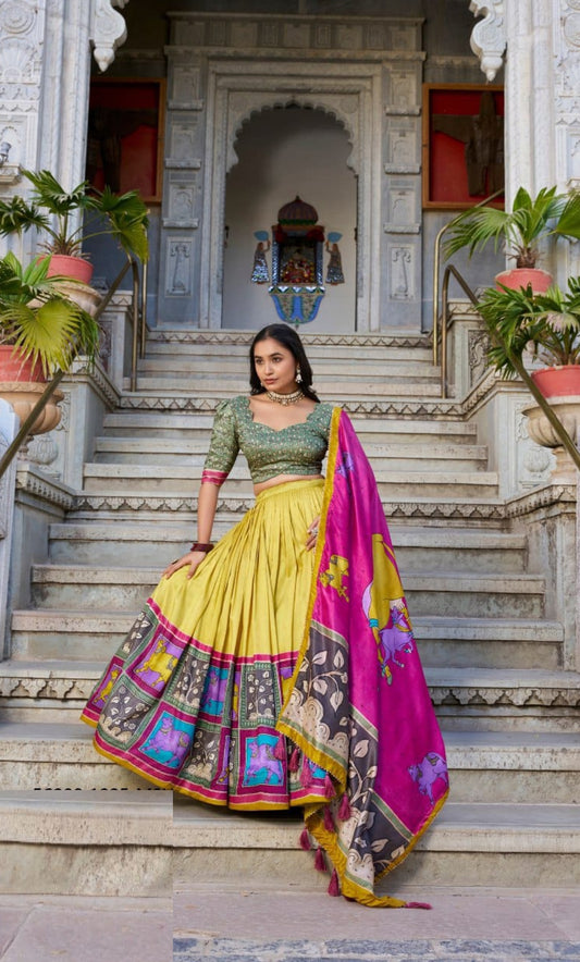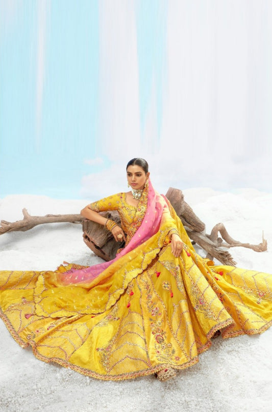 Vivid Yellow And Pink Silk Stylish Lehenga
