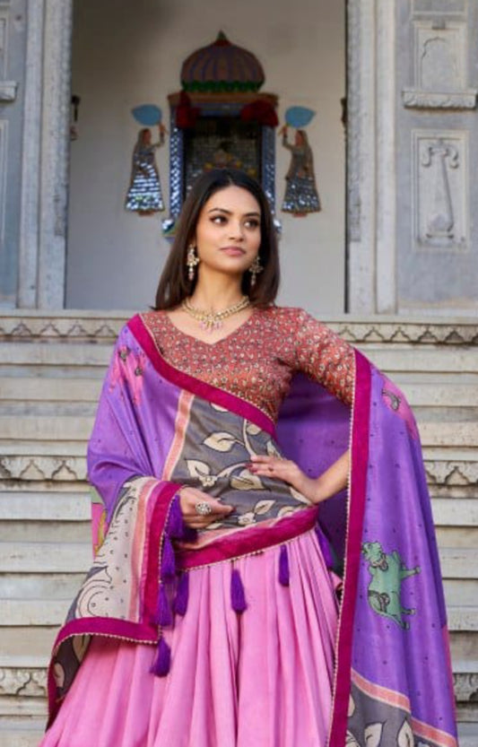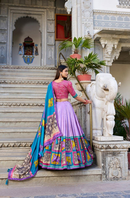 Women Lilac Multi Tussar Silk Floral Print Lehenga