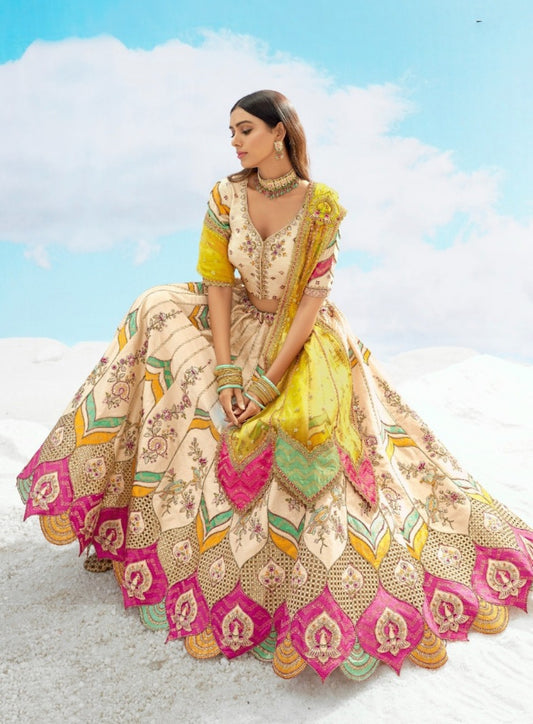 Sculpted Cream Multi Silk Stylish Lehenga