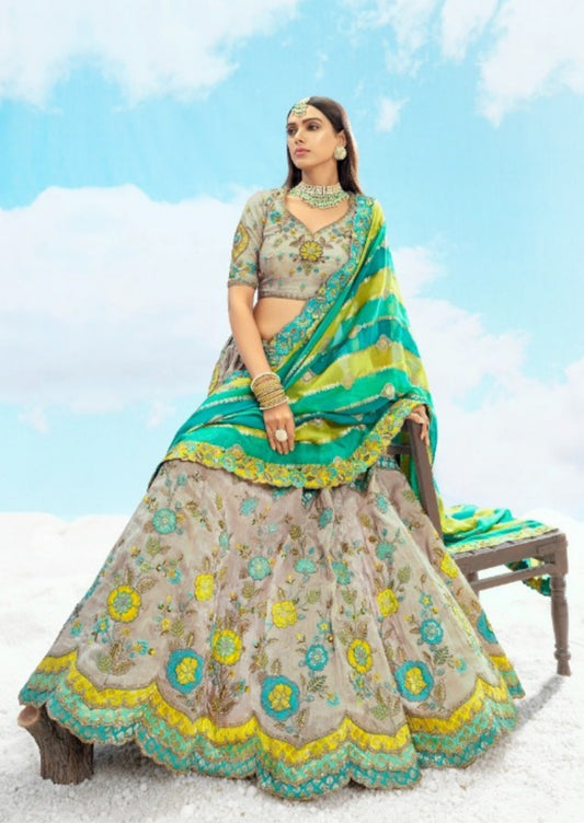 Chic Grey Pure Organza Bridal Lehenga