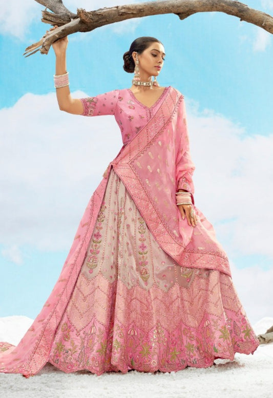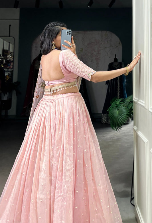 Effortless Baby Pink Silk Stylish Lehenga