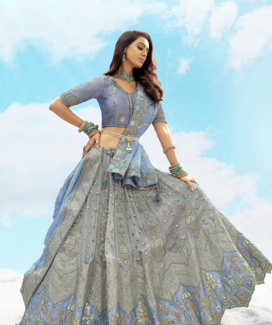 Flattering Greyish Blue Silk Stylish Lehenga