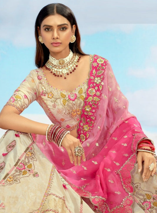 Sophisticated Beige Pure Organza Bridal Lehenga