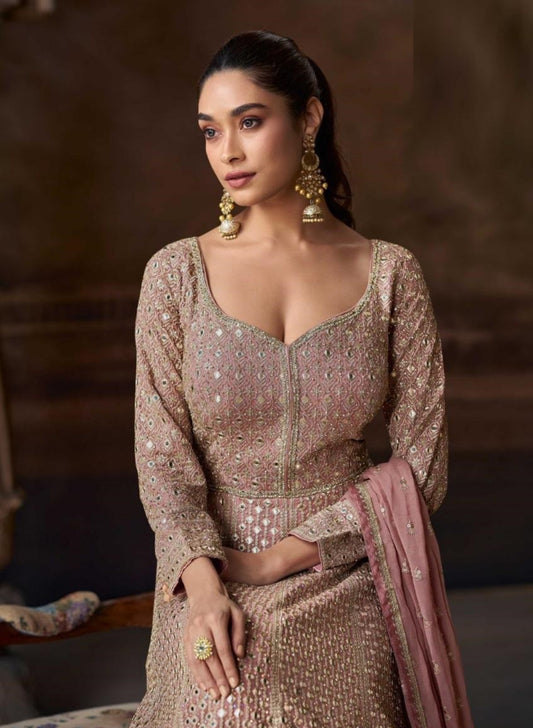 Women Pink Georgette Sequins Embroidery & Hand Work Gown With Jacket