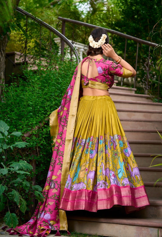 Women Multi Mustard Dola Silk Floral Print Leheng