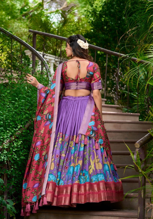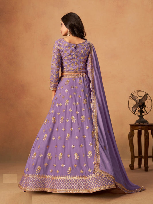 Women Purple Organza Traditional Lehenga