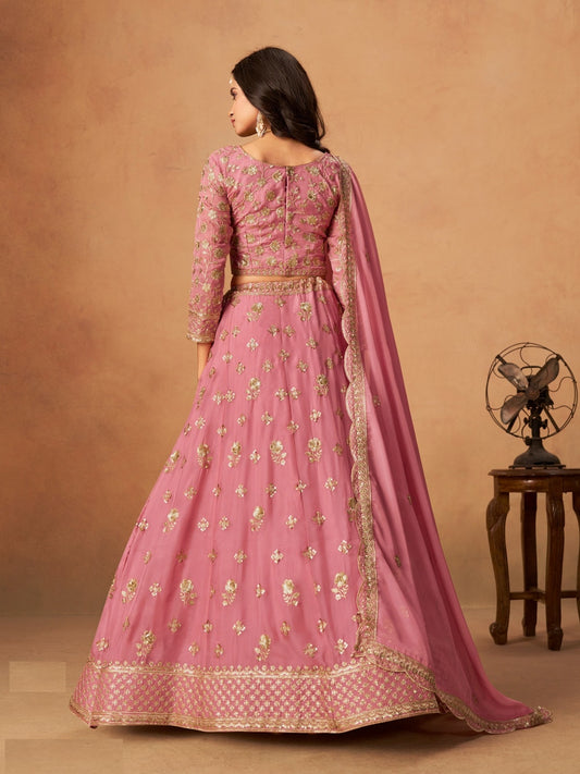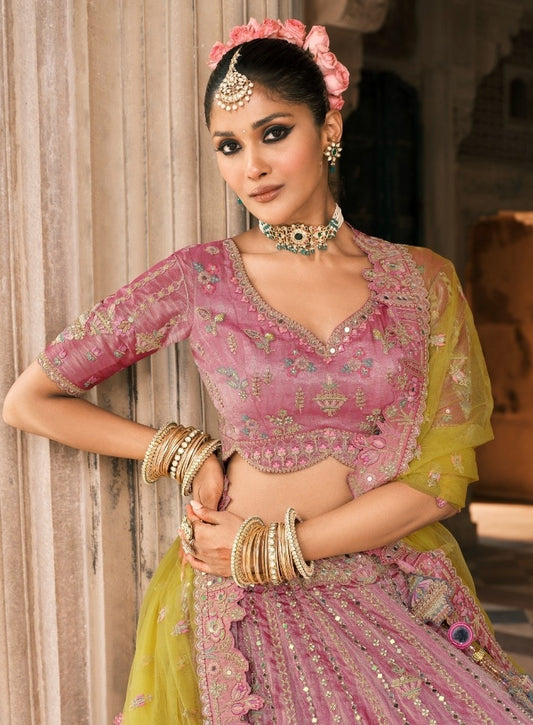 Lustrous Pink Fancy Silk Bridal Lehenga