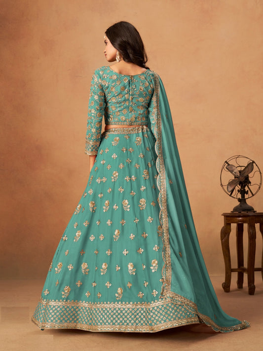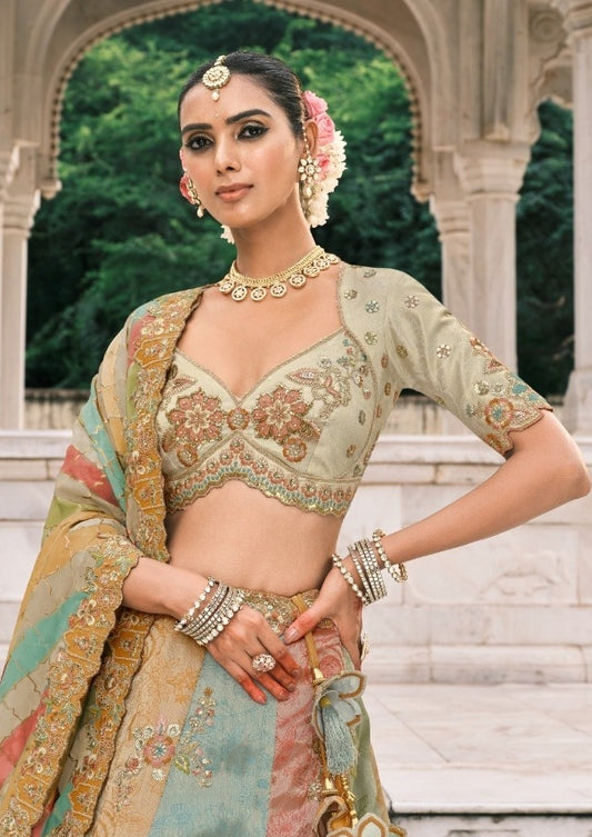 Avant-Garde Sea Green Fancy Silk Bridal Lehenga