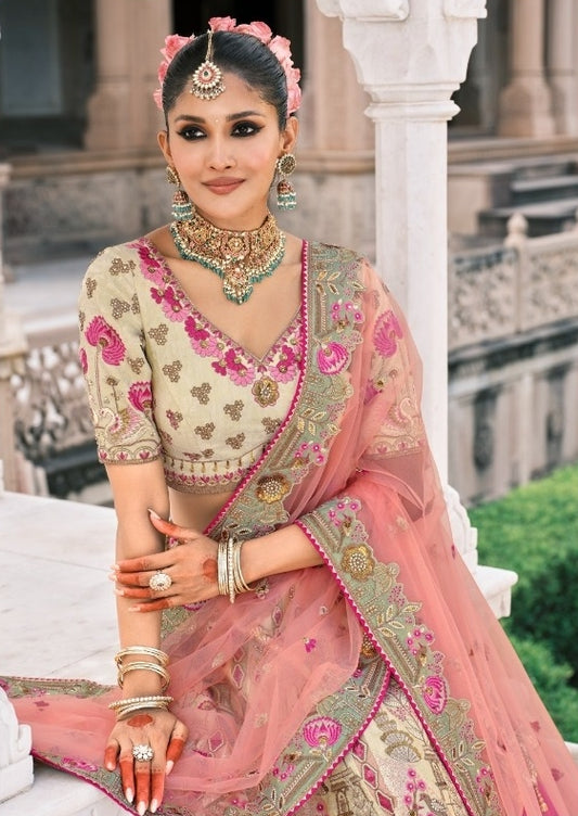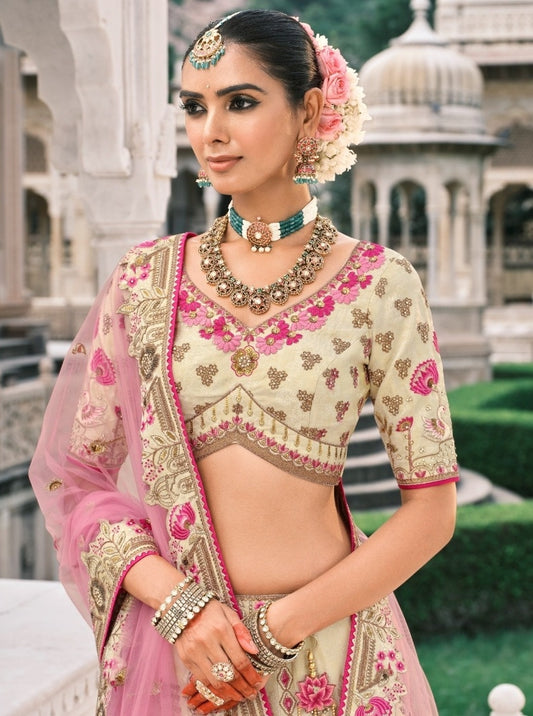 Sublime Cream Fancy Silk Bridal Lehenga