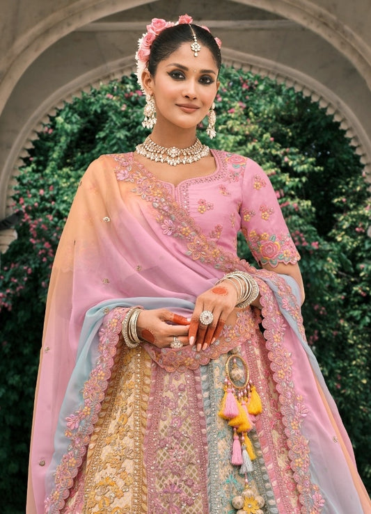 Flattering Pink Fancy Silk Bridal Lehenga