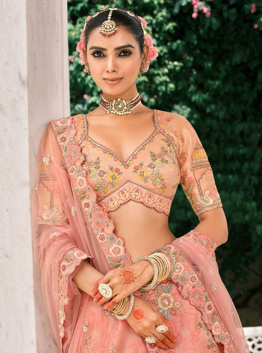 Gorgeous Peach Fancy Silk Bridal Lehenga