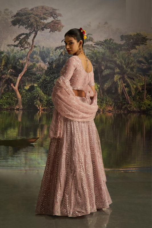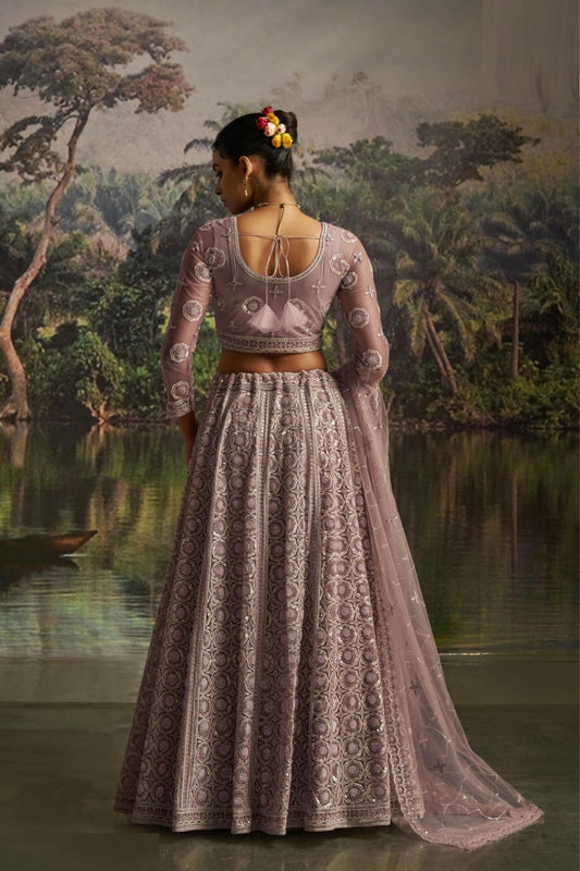 Luxe Mauve Soft Net Bridal Lehenga Set