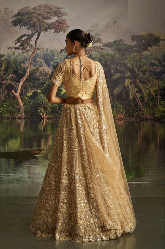 Opalescent Beige Soft Net Bridal Lehenga Set