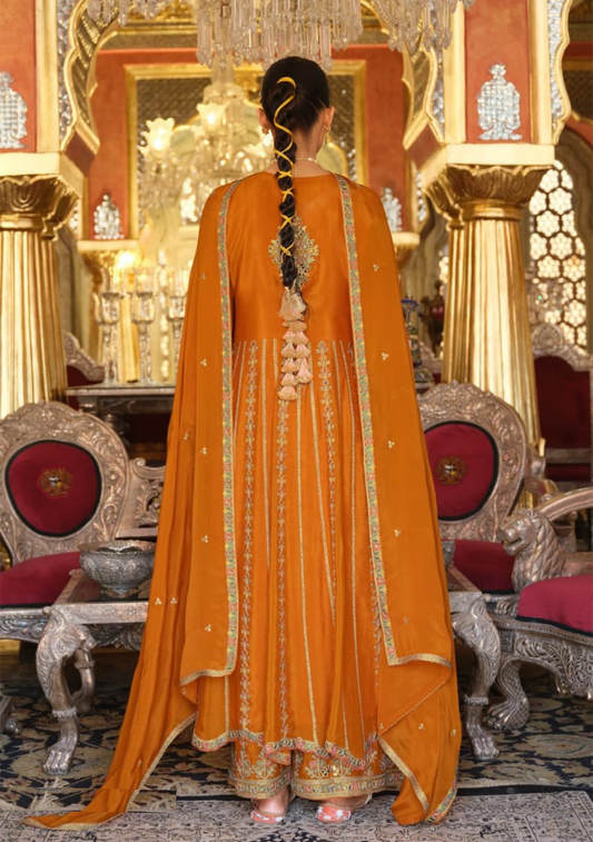 Avant-Garde Rust Silk Front Slit Salwar Suit Set
