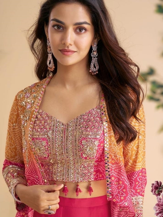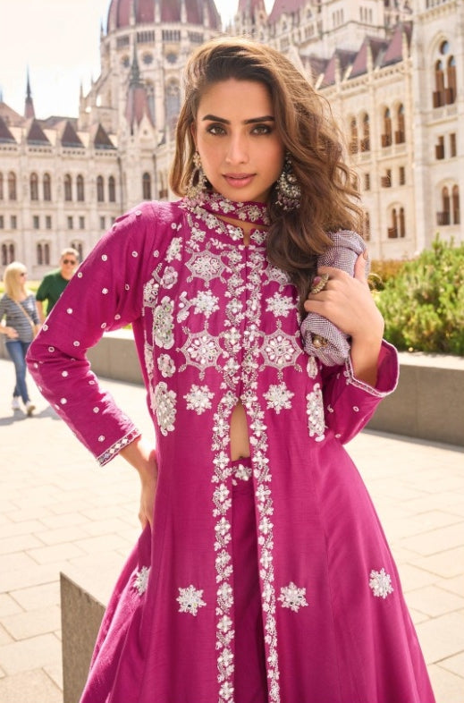 Women Pink Real Chinon Silk Indo Western Outfit Dress