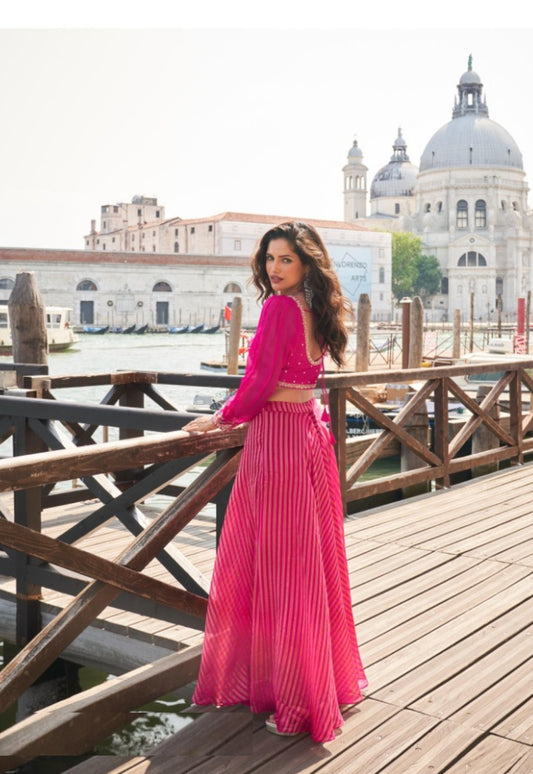 Women Dark Pink Pure Organza Spaghetti Sleeveless Suit Set