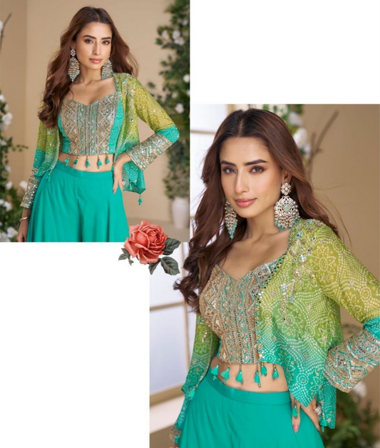 Women Teal Real Chinon Silk Indo Western Outfit Dress