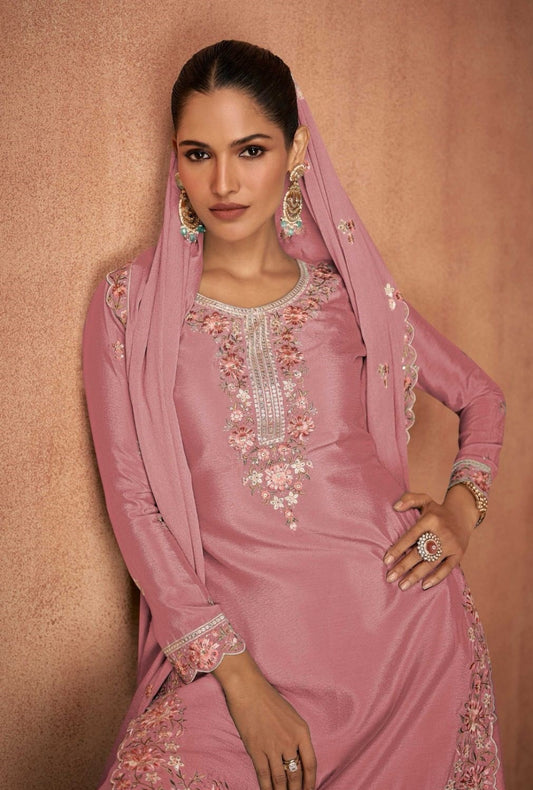 Gorgeous Pink Georgette With Embroidery Work Palazzo Bottom Suit Set