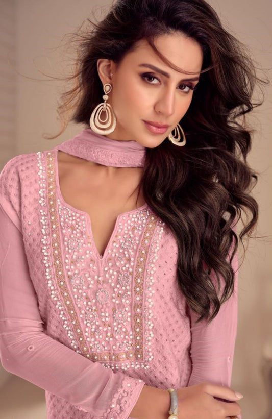 Statement-Making Light Pink Georgette Pant Bottom Suit Set