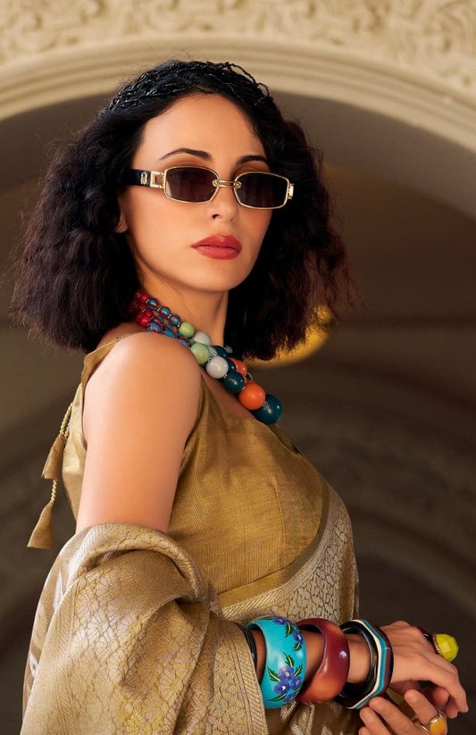 7. Tissue & Metallic Sarees – The Statement-Makers
