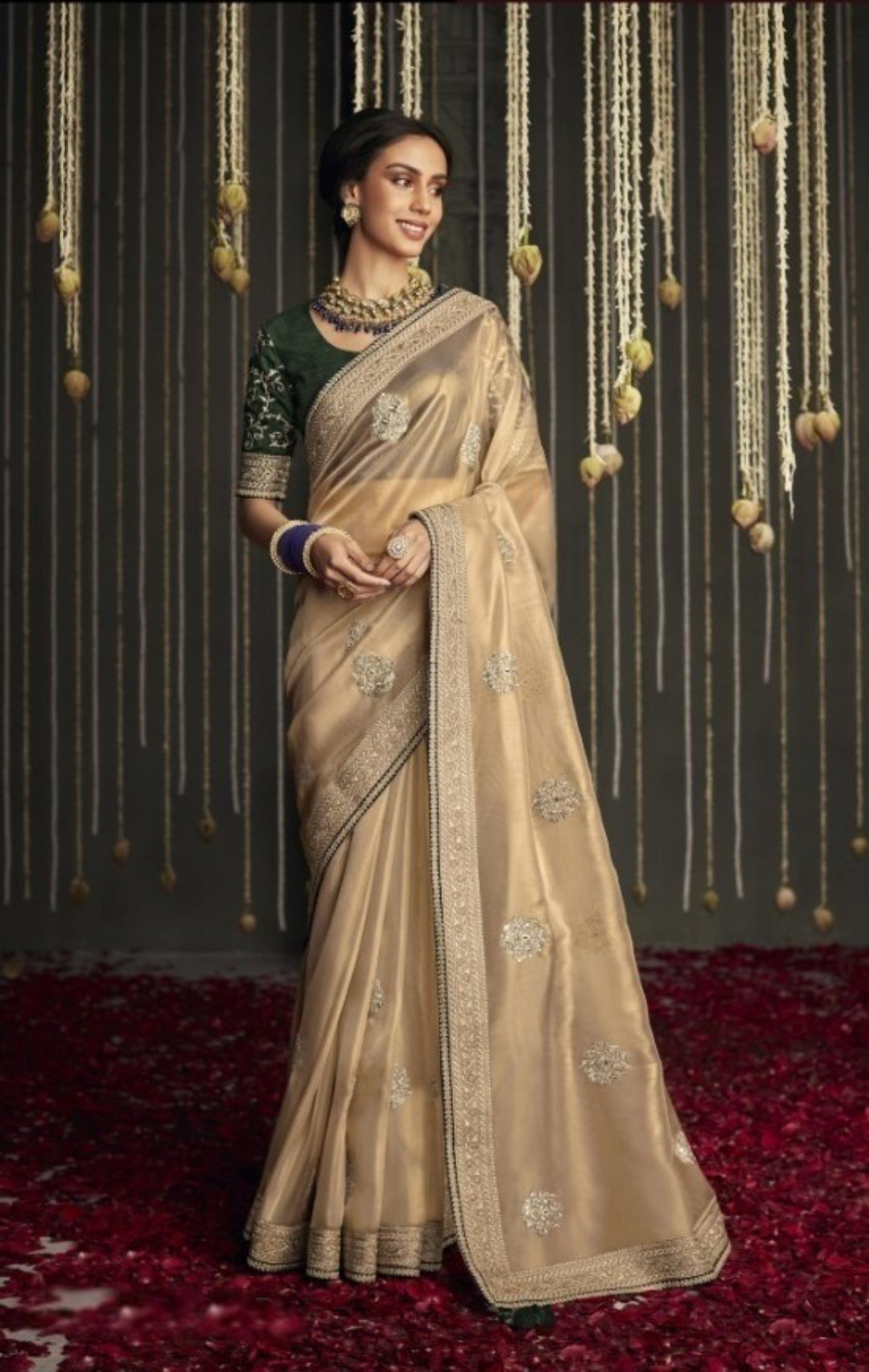 Discover the perfect blend of traditional and modern with our beige and green organza silk Saree. The intricate embroidery work adds a touch of elegance to this saree, making it the ideal choice for any special occasion. Made with high-quality materials, these Saree offer both style and comfort.
