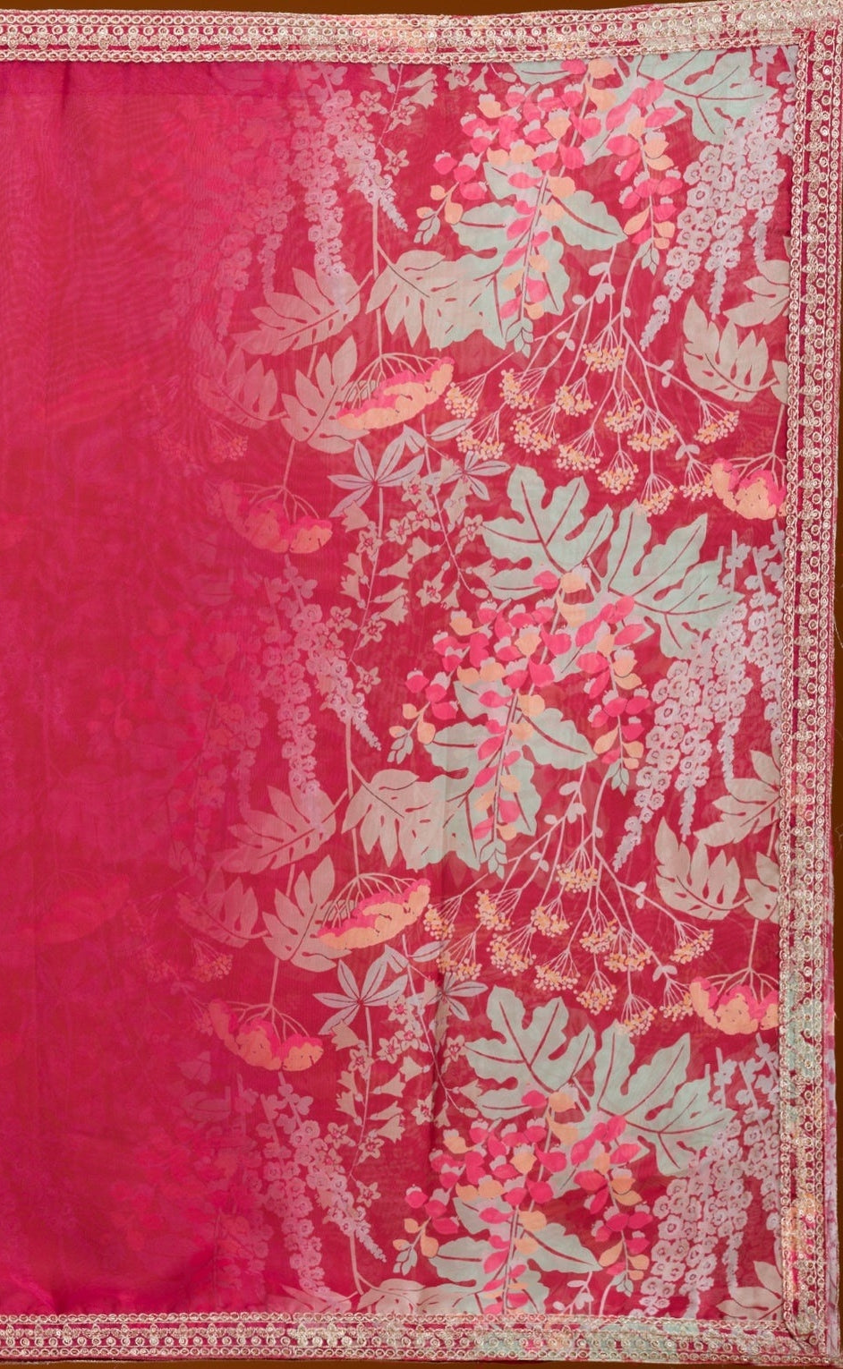 This chic pink organza lehenga blends lightweight fabric with elegant design for a stylish and graceful look. The sheer organza material adds a delicate, flowing effect, making it perfect for festive and celebratory occasions. Expertly crafted, this lehenga offers comfort alongside contemporary sophistication, enhancing your ensemble with refined charm.