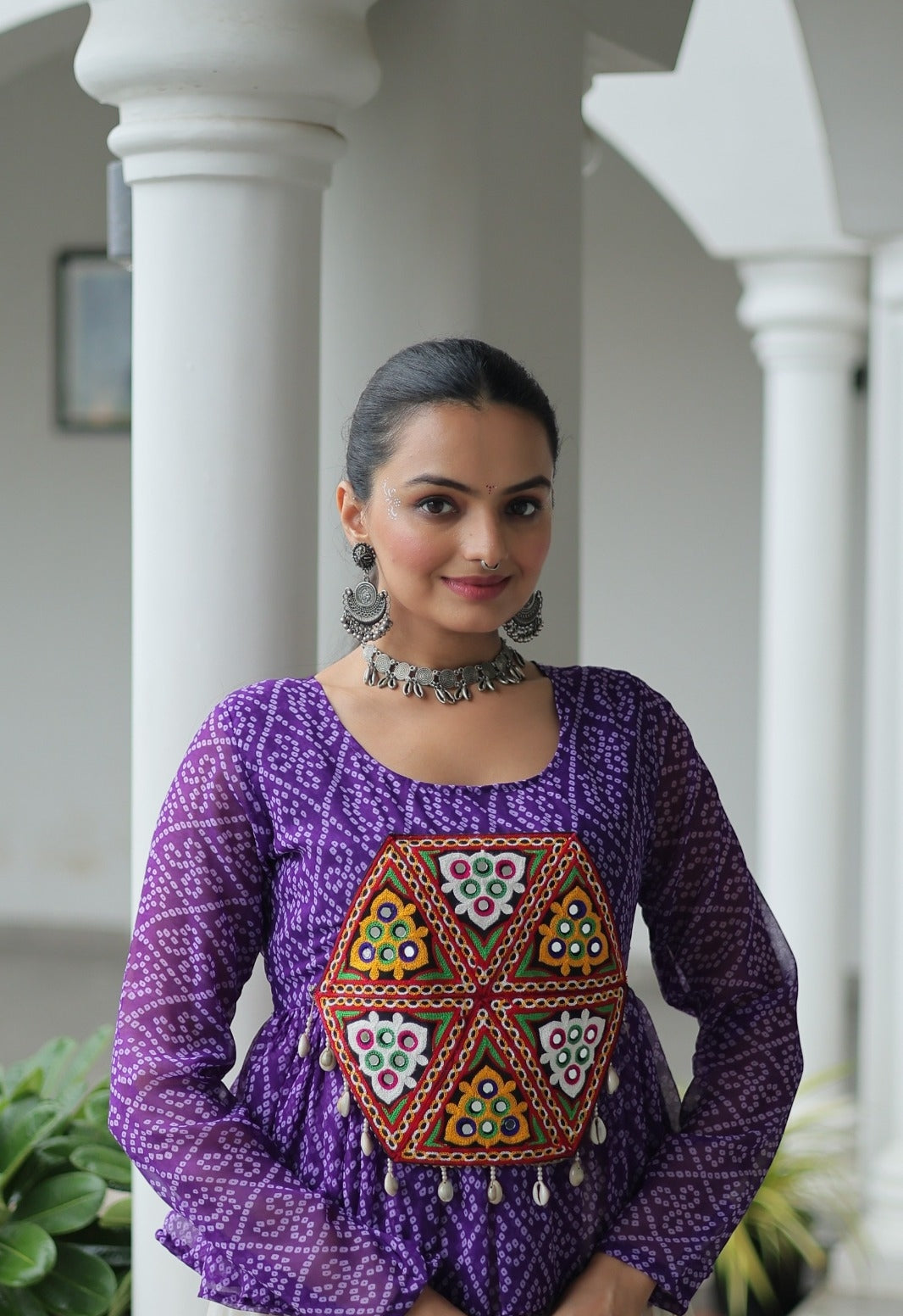 - Blouse Fabric : Georgette Bandhani Print Work With Kutchi Gamthi Patch Work