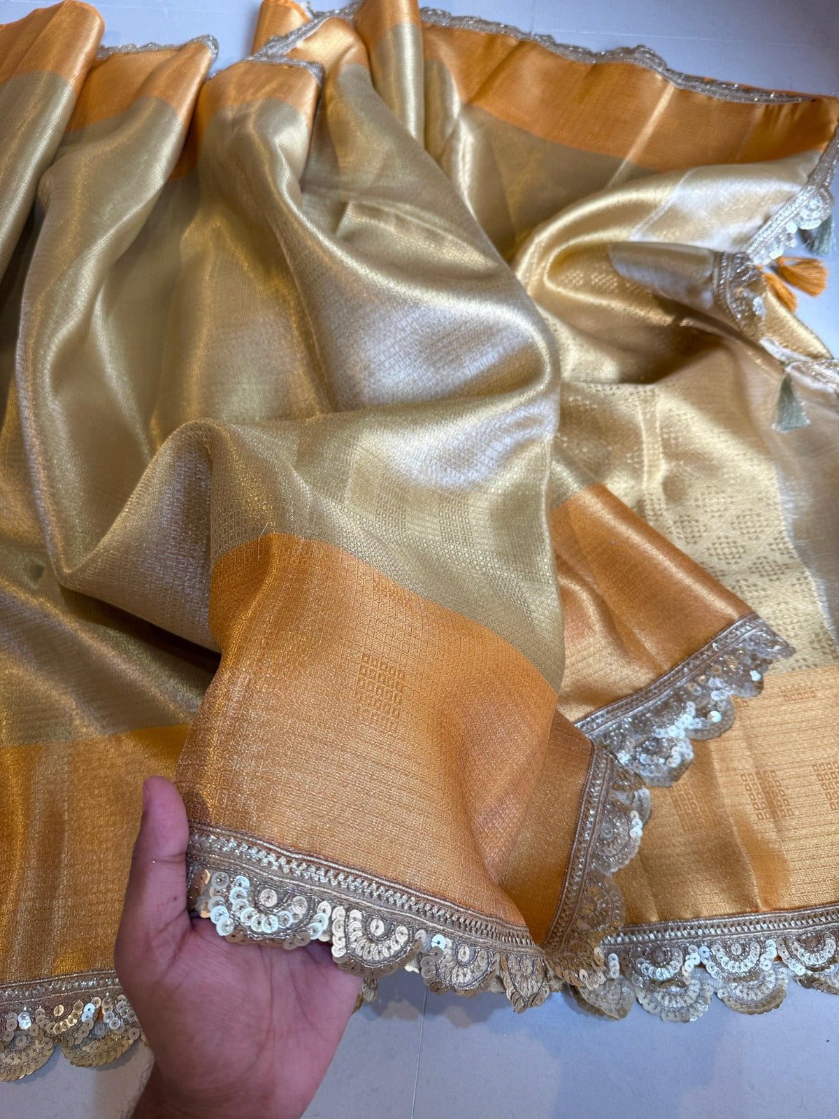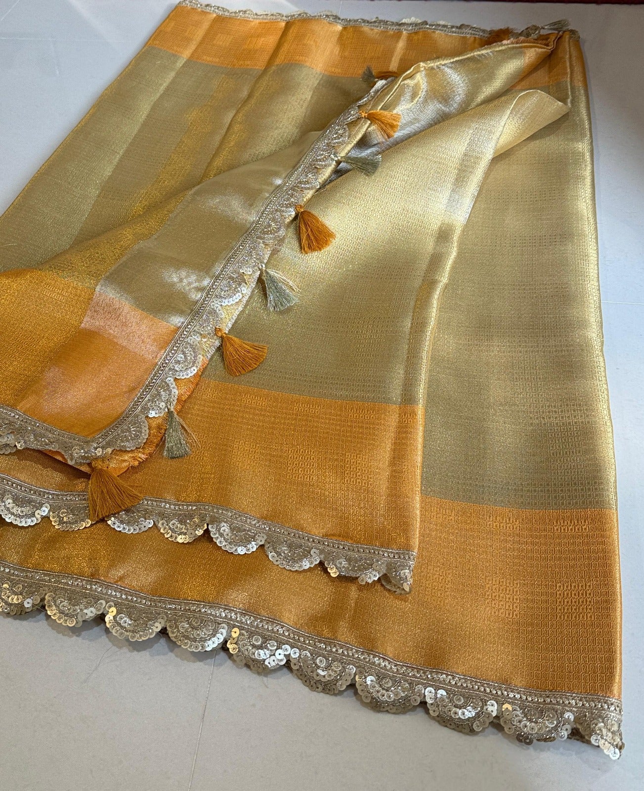 Banarasi Zari Tanchui Kanchipuram Soft Silk Saree With Beautiful Lace Work Border And Latkan Work