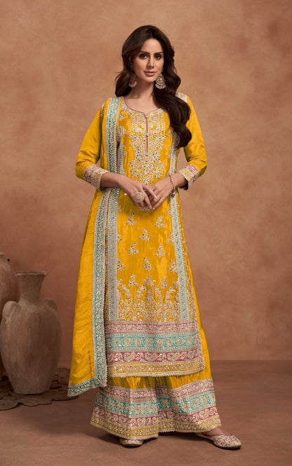 Gleaming Yellow Simar Silk Palazzo Suit Set