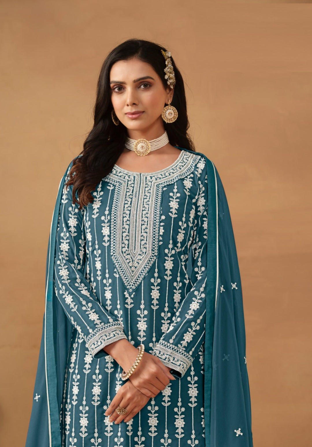Lustrous Teal Georgette Gharara Bottom Suit Set