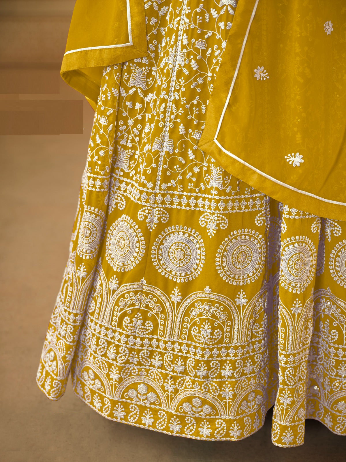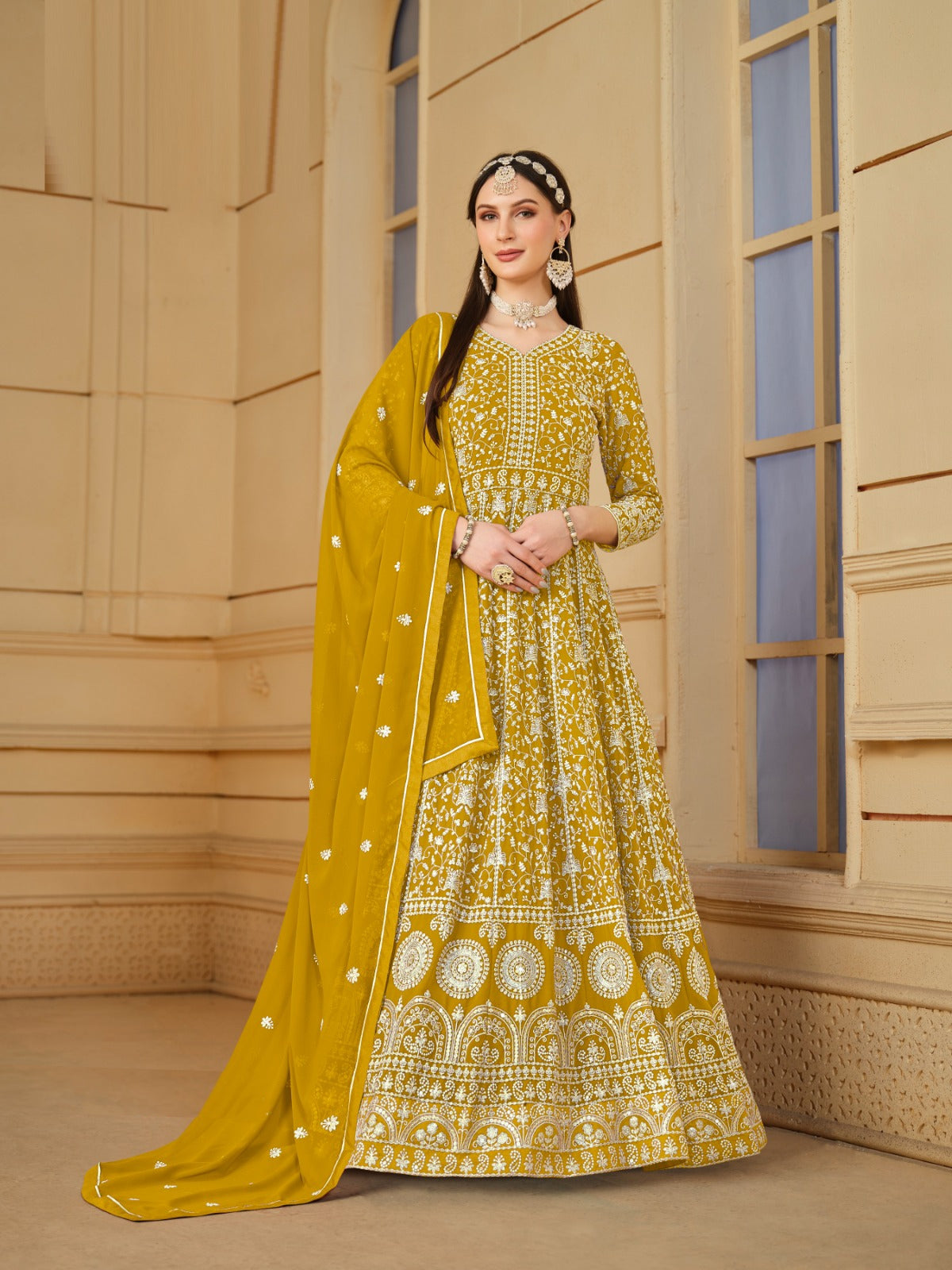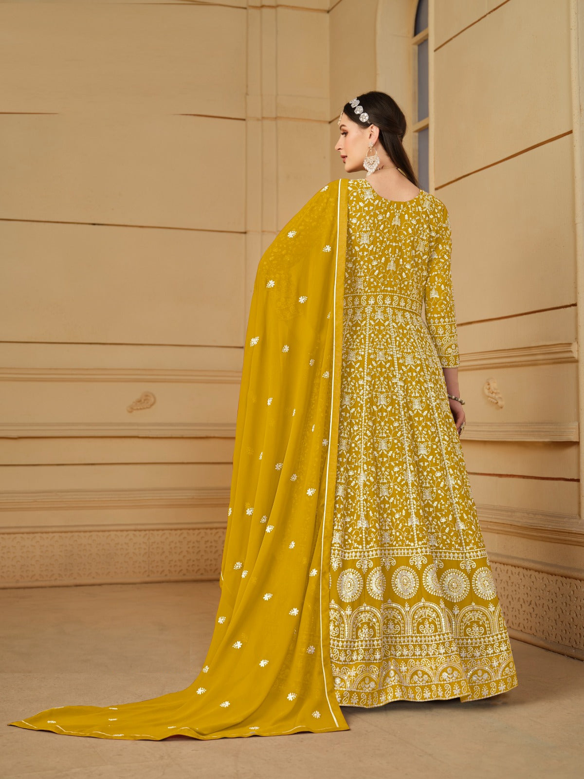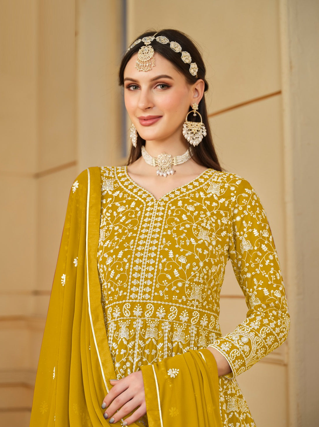 Introducing our Sublime Mustard Georgette Floor Length Suit Set. Made with premium quality fabric, this set features a floor-length design for a flowy and elegant look. Perfect for any occasion, this set is a must-have for those who appreciate both style and comfort. Available now with a limited time offer.