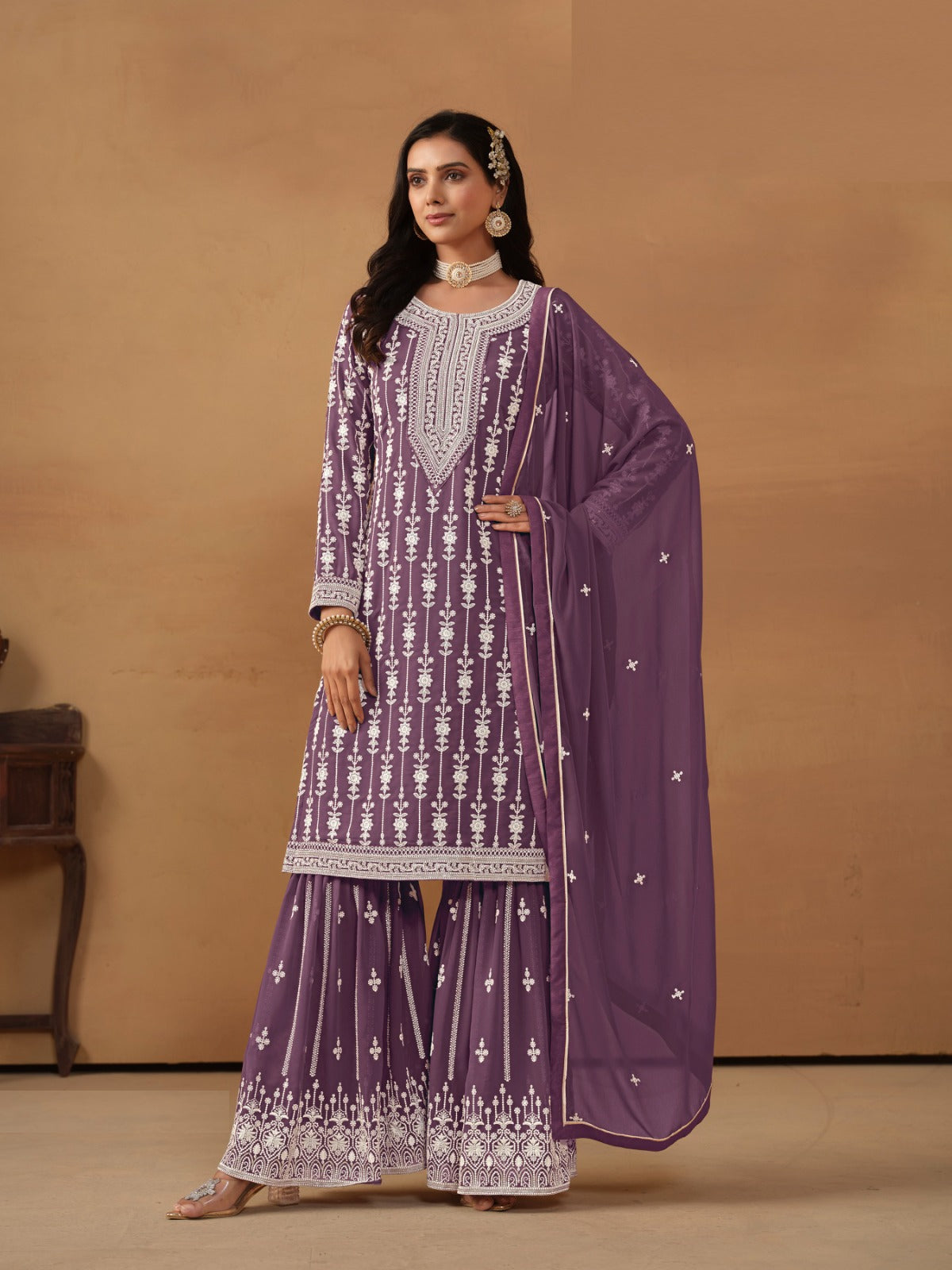 Tailored-To-Perfection Purple Georgette Gharara Bottom Suit Set