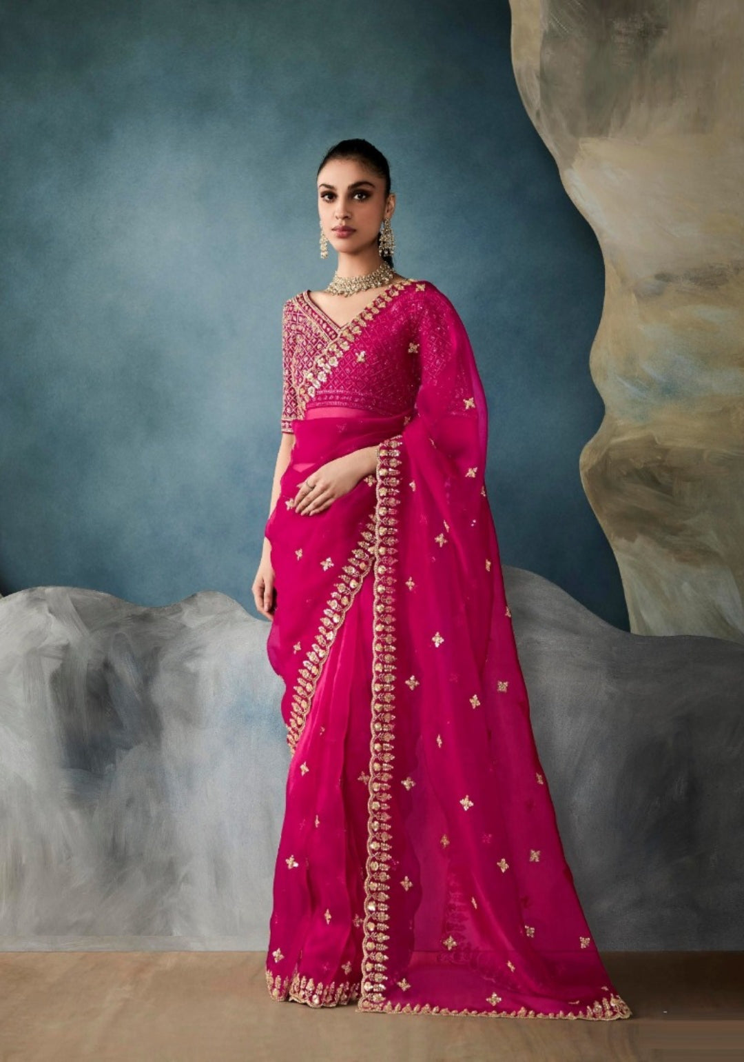 Timeless Pink Tissue With Hand Work Tissue Saree