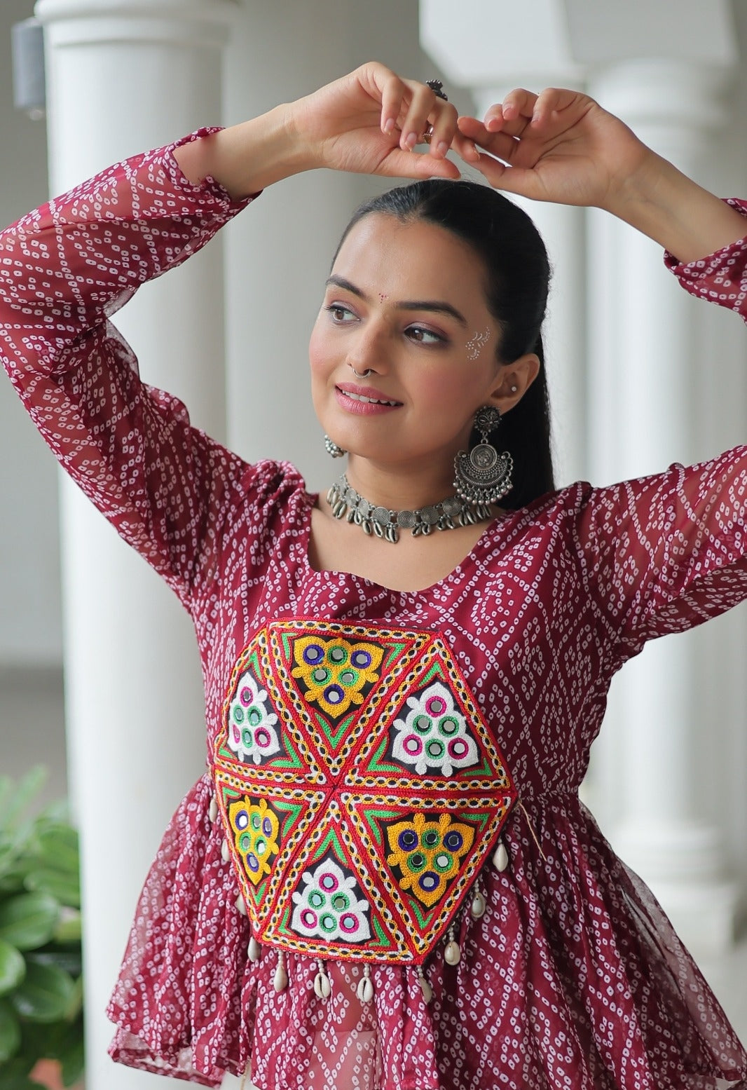 - Blouse Fabric : Georgette Bandhani Print Work With Kutchi Gamthi Patch Work