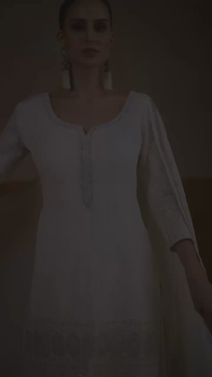 # Women Cream Real Georgette Palazzo-Bottom Suit Set This luxurious palazzo suit set showcases premium georgette fabric in an understated cream tone, ideal for discerning brides and formal occasions. The generous palazzo cut provides elegant movement and comfort, while the authentic georgette weave ensures a refined drape that photographs beautifully. Designed as a complete three-piece ensemble, it seamlessly blends traditional Indian aesthetics with contemporary silhouettes. The neutral cream shade offers versatility for layering with statement jewelry or embellishments. A sophisticated choice for those seeking timeless bridal elegance with superior fabric quality and impeccable tailoring.