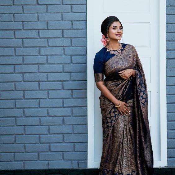 Women Navy Blue Banarasi Soft Silk Saree